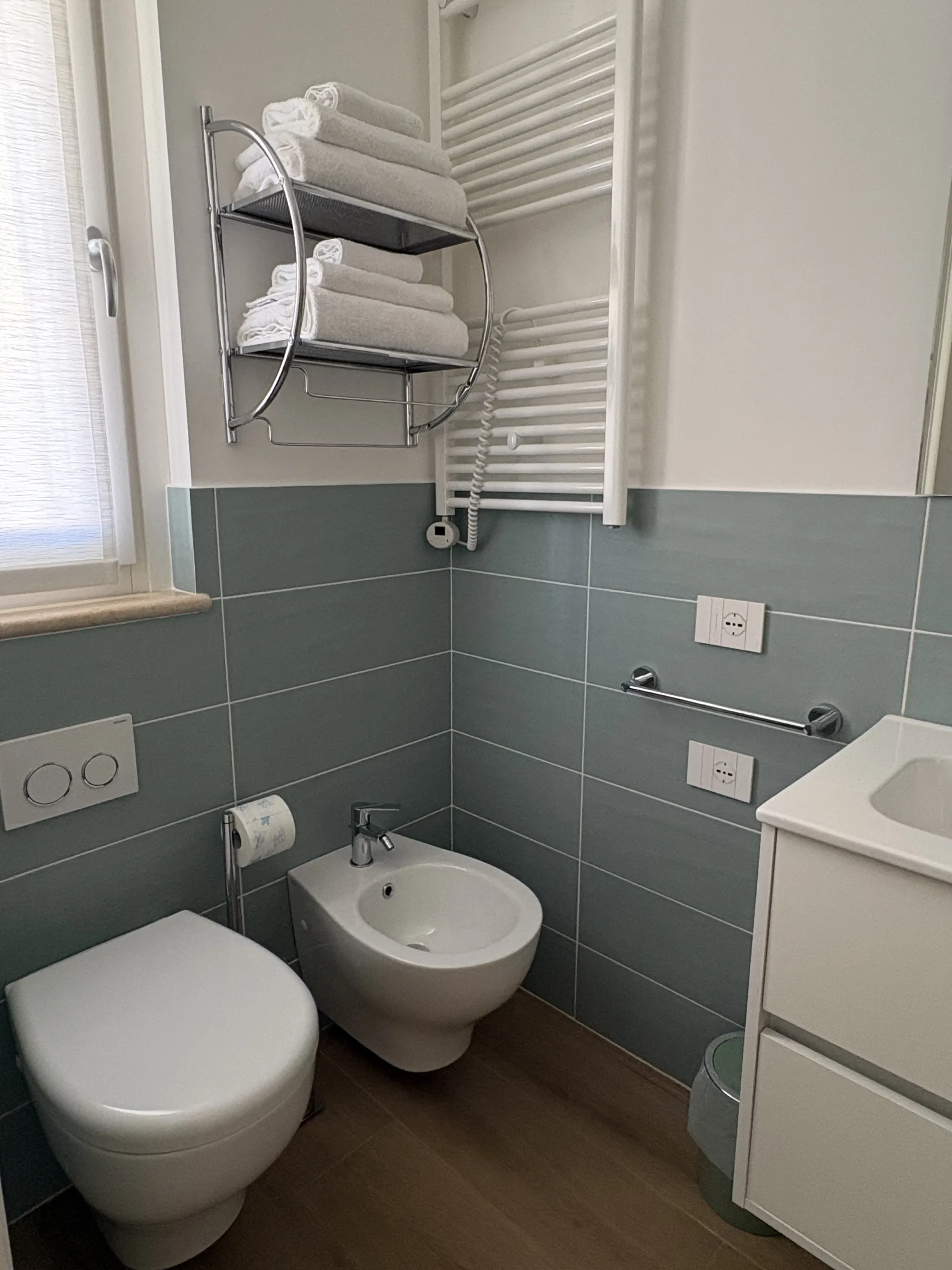 Completano l’alloggio una piccola cabina armadio e un bagno finestrato, curato e funzionale, con doccia e bidet. A disposizione degli ospiti biancheria da letto e da bagno, prodotti per il bagno, ferro e asse da stiro.