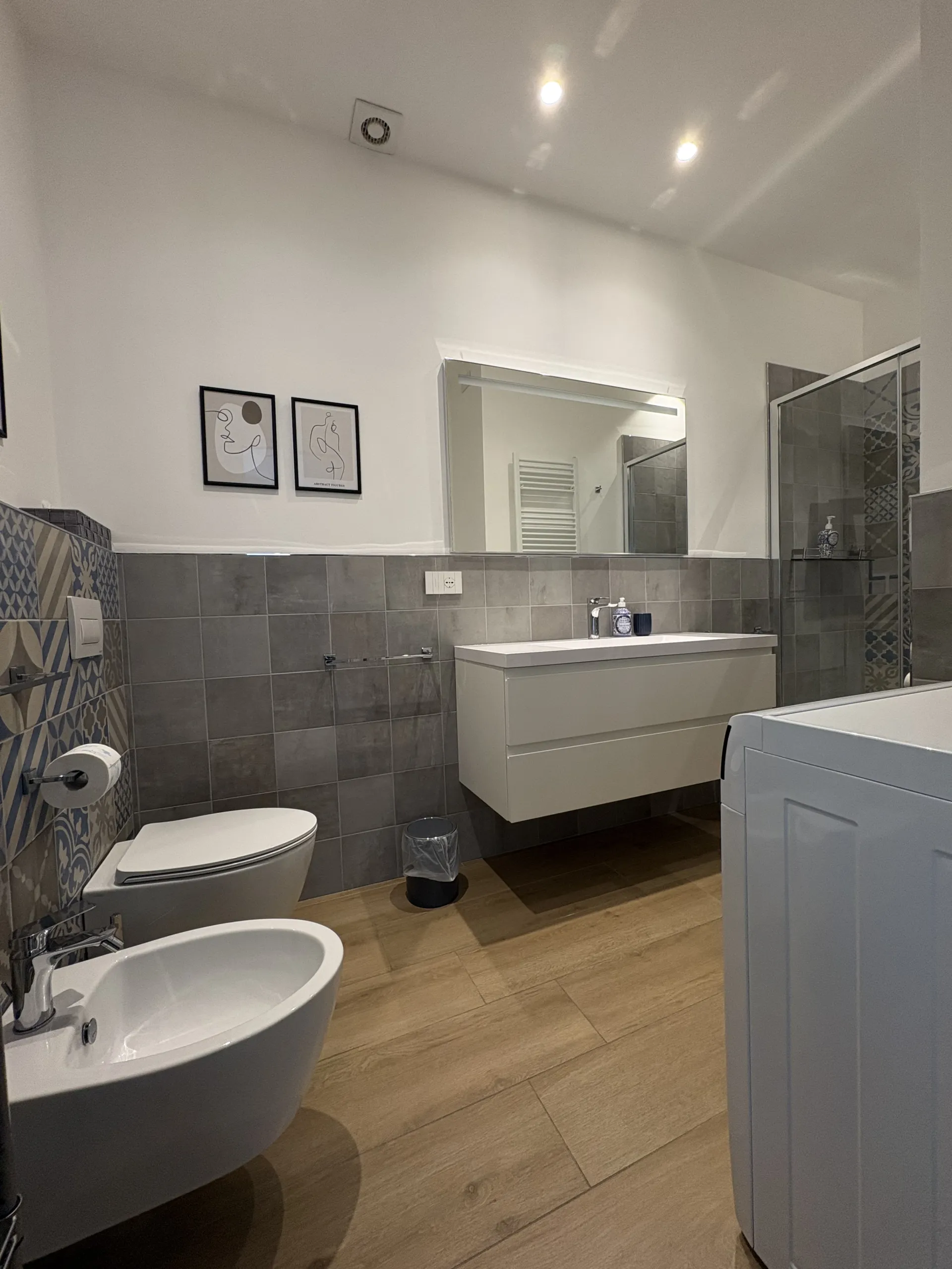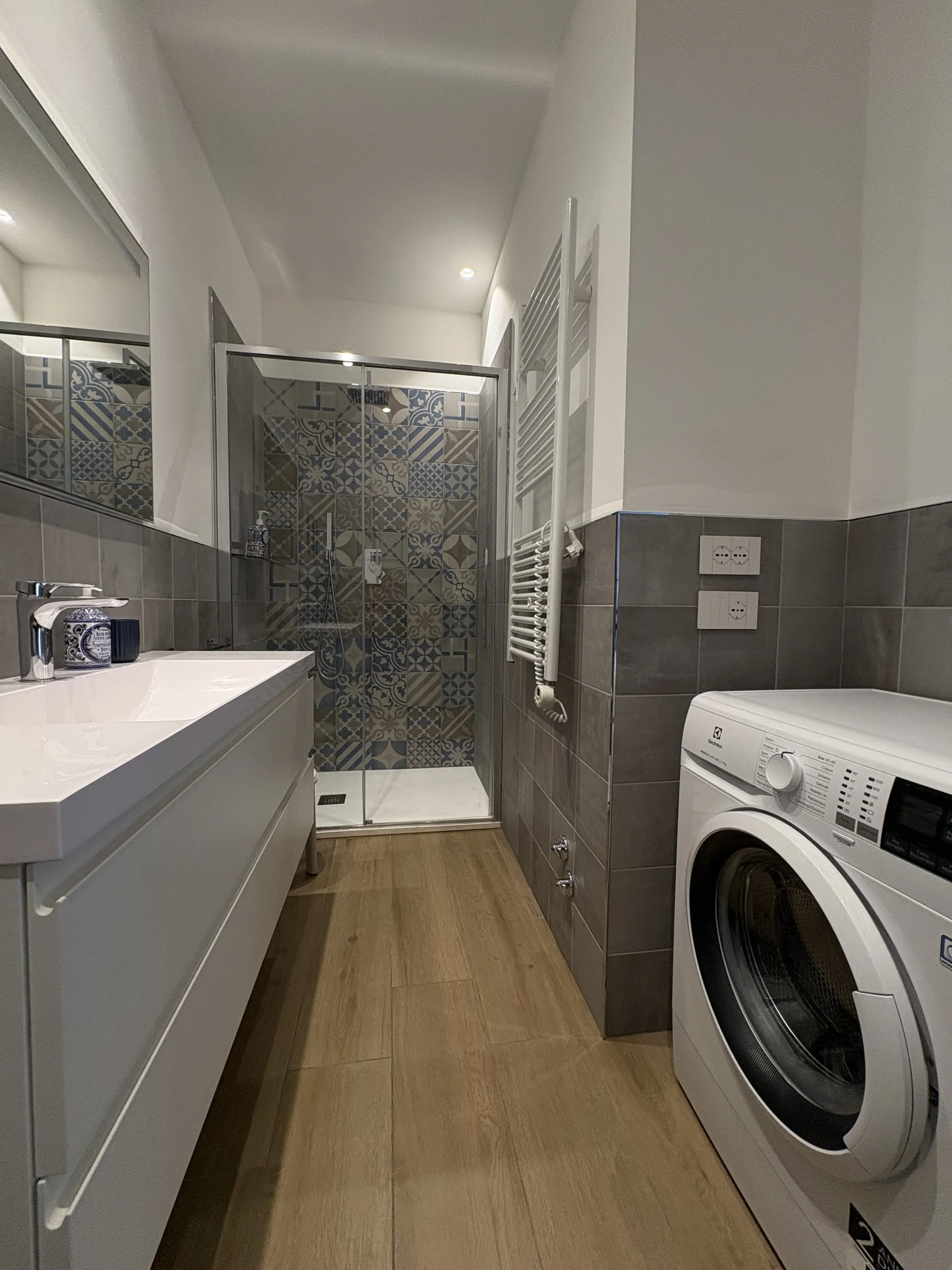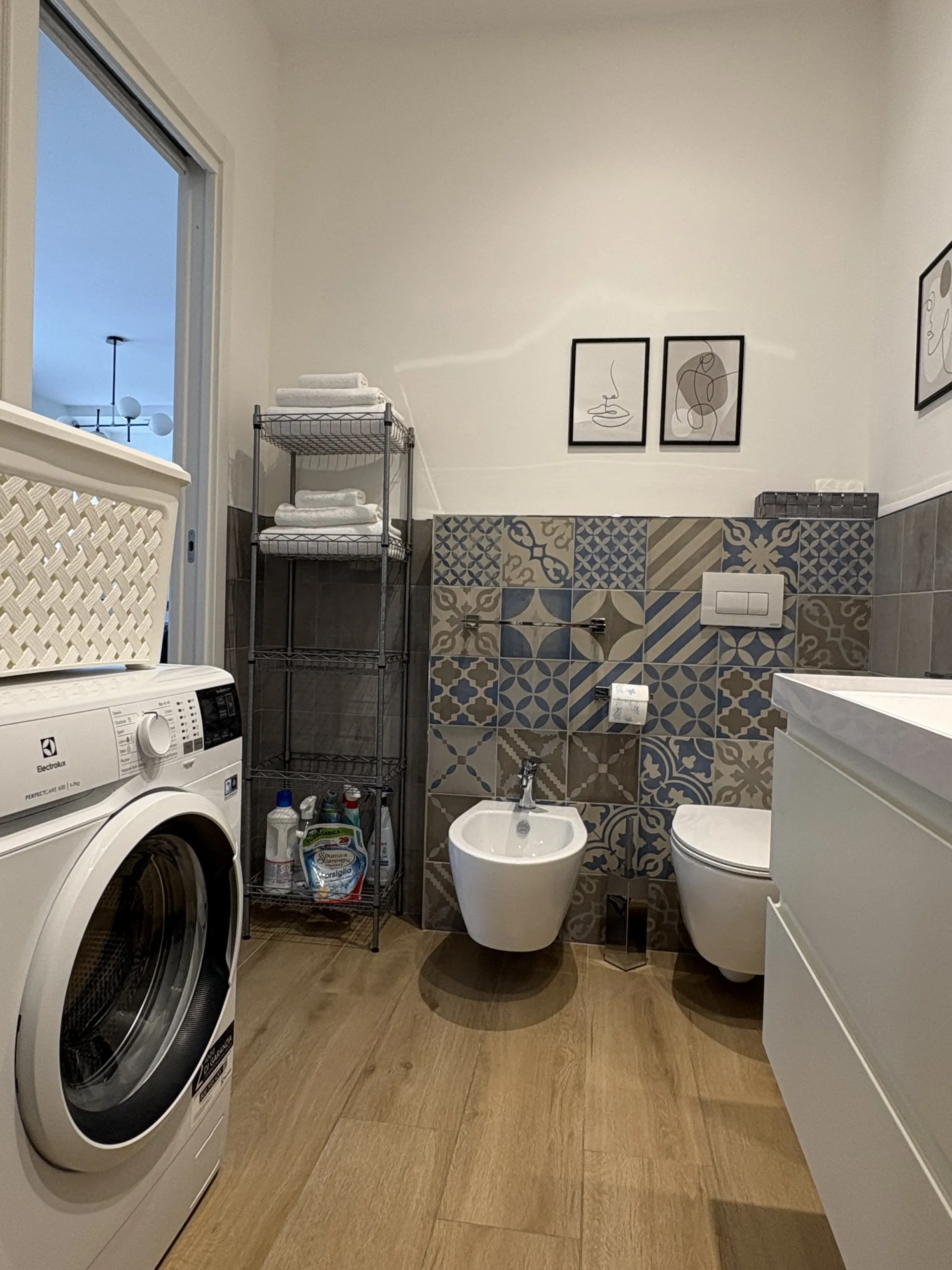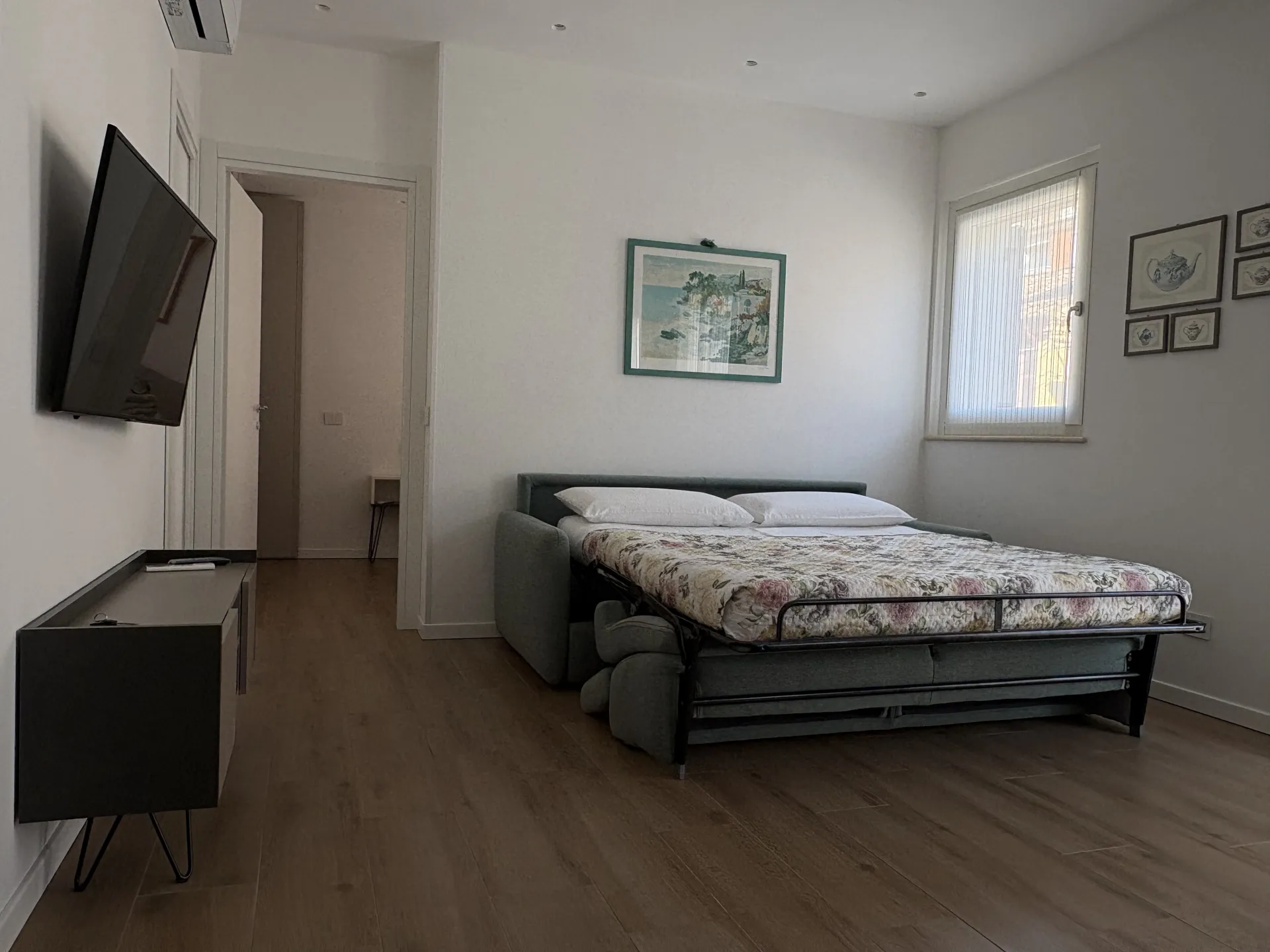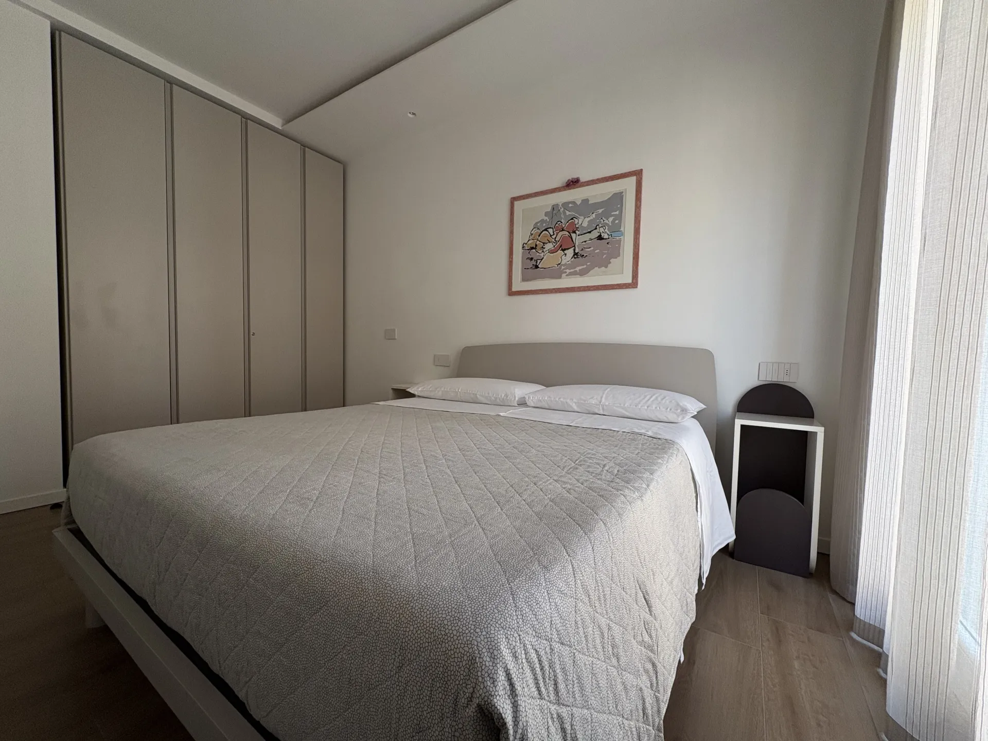 La camera da letto è arredata con un comodo materasso in memory foam e un ampio armadio. Il bagno, pur non essendo finestrato, è ben organizzato e dispone di doccia, bidet, lavatrice e prodotti da bagno forniti agli ospiti. Sono presenti anche ferro e asse da stiro, uno stendibiancheria da balcone e la fornitura completa di biancheria da letto e da bagno. Su richiesta è disponibile anche una culla per i più piccoli.